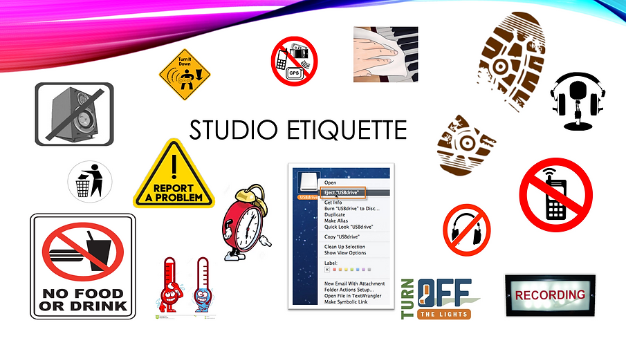 Look at each icon above. What do you think they represent in terms of MIDI studio etiquette?